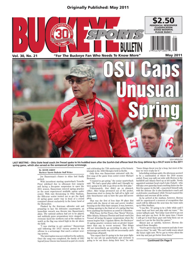 In the last edition of Reprint Thursday, we looked back at Ohio State’s unique 2011 spring football practice, where the Buckeyes prepared for the 2011 season knowing that five players, including quarterback Terrelle Pryor, and coach Jim Tressel were all facing suspensions to start the upcoming campaign.