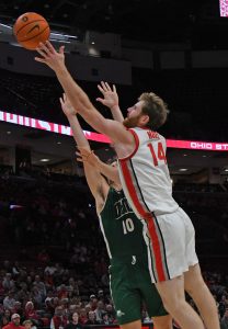 Ohio answered with five points, but the Buckeyes went on a 7-0 run to close the half with a converted and one from Christoph Tilly and four straight points from Noel. The Buckeyes went into the locker room at halftime with a 52-37 lead.