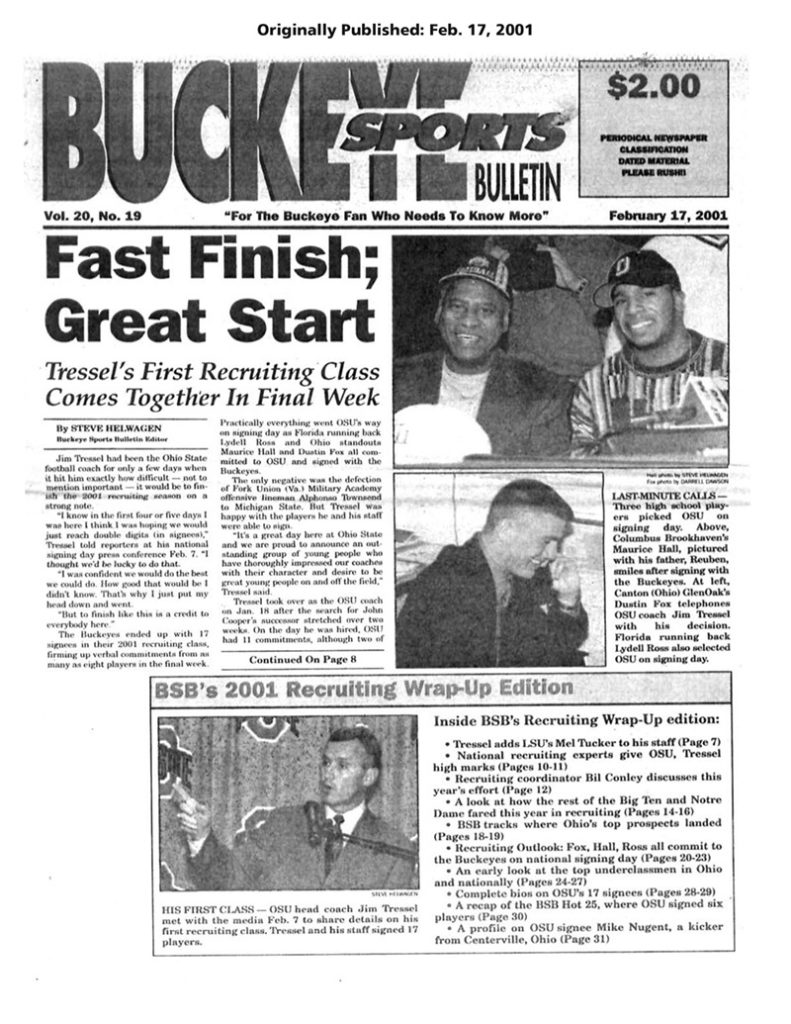 Jim Tressel was hired as Ohio State football coach on Jan. 18, 2001. One of his first orders of business was to try to cobble together a recruiting class with National Signing Day just less than three weeks away on Feb 7. By all accounts, he did an outstanding job Read More