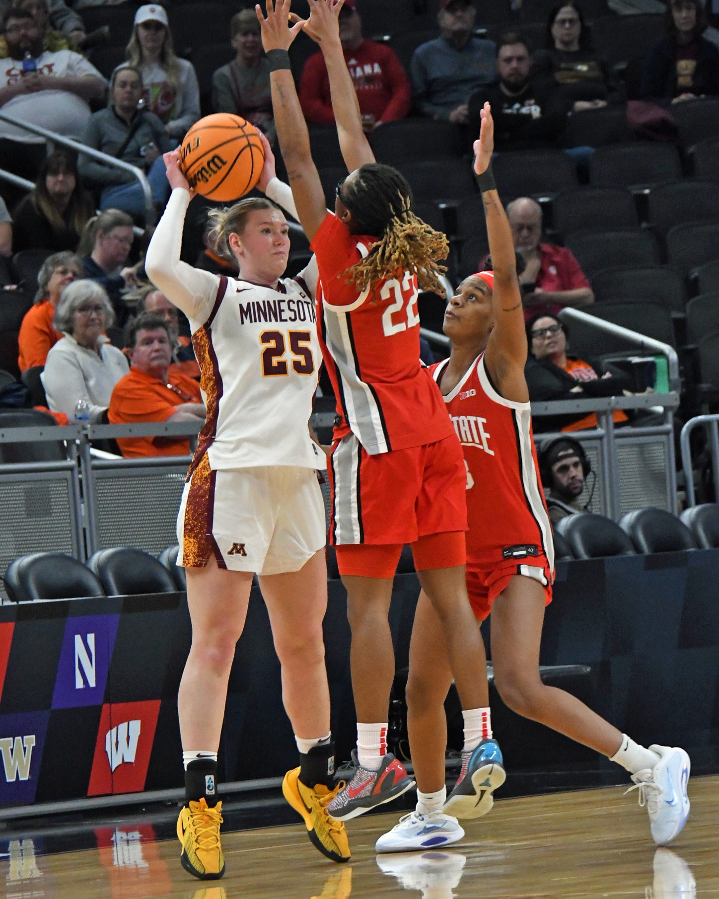 The Buckeyes had a chance to stretch their lead beyond double-digits after forcing a Minnesota miss, but they couldn’t convert and Minnesota knocked down back-to-back three-pointers to make it 44-42.