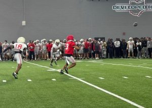 Two 2026 transfers have become “official” Buckeyes, as Ohio State defensive tackle James Smith and wide receiver Devin McCuin shed their black stripes after Saturday’s Student Appreciation Day practice.