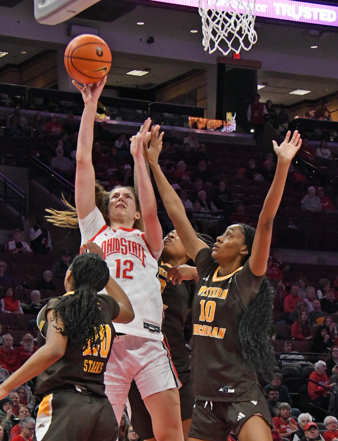 Sophomore guard Alli Harness ended the run with a three-pointer with just under two minutes remaining in the third quarter. Ohio State and Western Michigan traded the next two layups before Buckeyes sophomore guard Ava Watson hit a long two-pointer with just over a second remaining to increase the lead to 77-34 at the end of the frame.