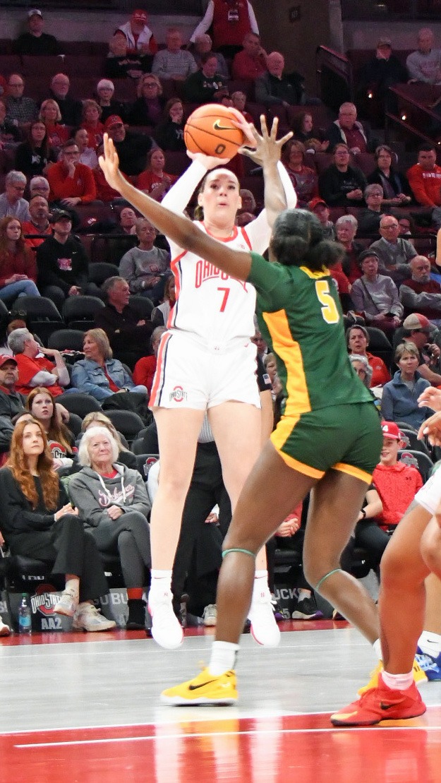 Biriuk was a legitimate factor for Ohio State during the team’s nonconference slate. In the Buckeyes’ dominant 130-32 win over Niagara, Biriuk scored 25 points, grabbed four rebounds, had an assist and two steals.