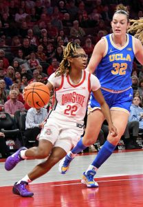 UCLA grew the lead back to six after buckets from senior center Lauren Betts and graduate power forward Angela Dugalic, but senior guard T’yana Todd made a three-point jumper that made the score 47-44. Betts scored the next four points, but Todd answered with another three-pointer. The Buckeyes couldn’t sustain their hot shooting, though, and went scoreless for over two minutes as UCLA took a 57-47 lead late in the third quarter.