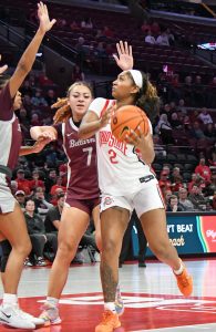 Cambridge was Ohio State’s leading scorer in the win. She finished the game with 26 points on 9-of-16 shooting (56.3 percent) and also had two assists and six rebounds. Gray (17 points) and Kitts (12 points) also reached double-figures.