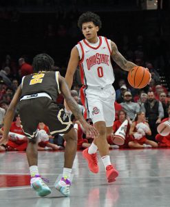 The Ducks brought the game back within three points multiple times, with a Kwame Evans Jr. three-pointer making the score 46-43 in favor of OSU at 14:05. But the Buckeyes went on a 21-0 run, holding Oregon scoreless for over seven minutes of game time.