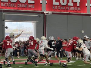 In their practice open to students, fans and media on student appreciation day on Saturday, Lowe and Moore had their share of struggles in pass protection, with Buckeye defensive linemen seemingly able to pressure rising sophomore starting quarterback Julian Sayin at will.