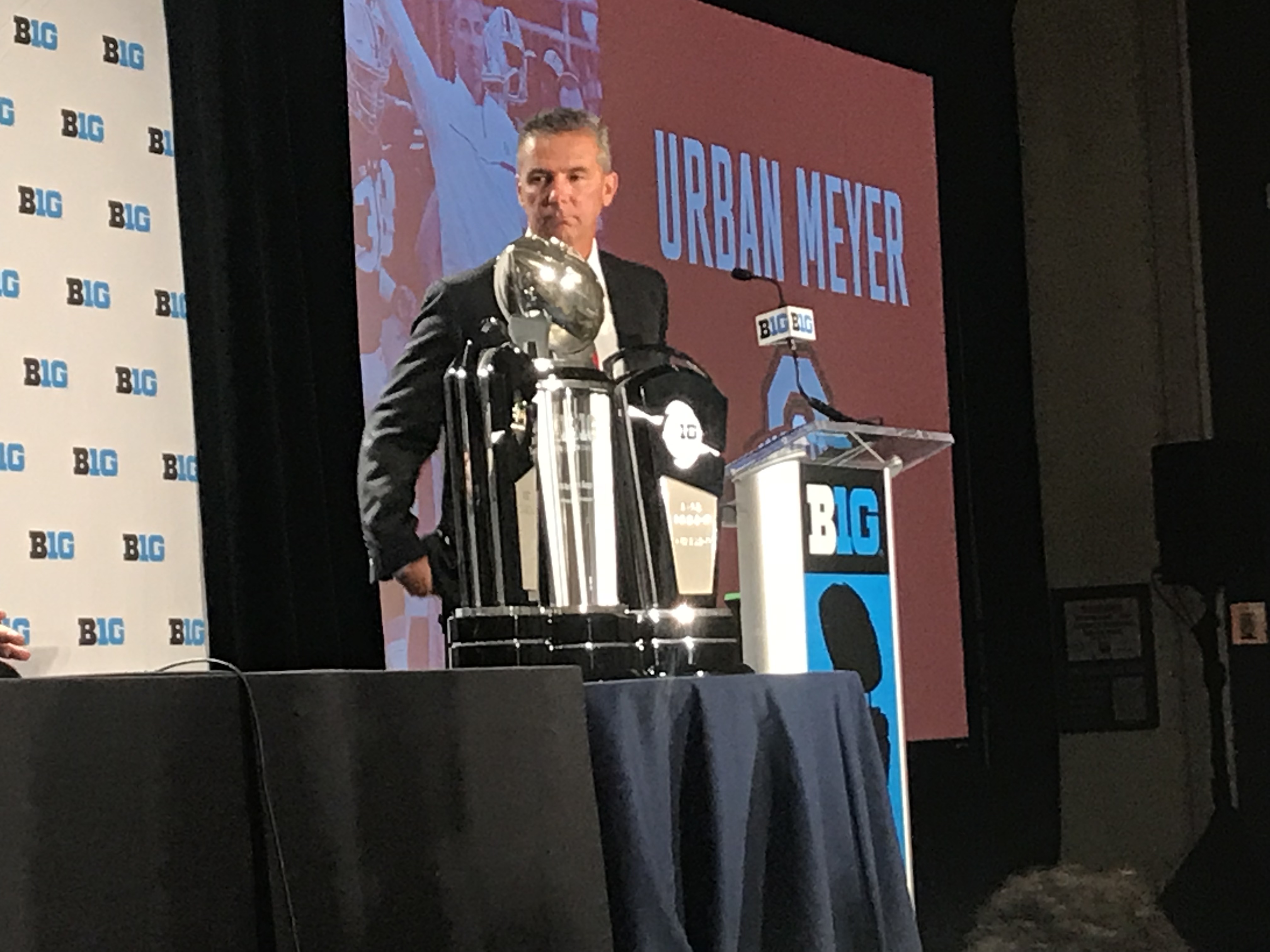 CHICAGO – Ohio State head coach Urban Meyer took the podium at Big Ten Media Days on Tuesday morning, less than 24 hours after he announced the firing of wide receivers coach Zach Smith after reports of multiple domestic violence accusations surfaced. Meyer addressed the change on his coaching staff, in addition to spending time talking about his 2018 Buckeyes while at the podium. A complete breakdown of the key points can be found below and a full transcript of Meyer’s remarks can be found here.