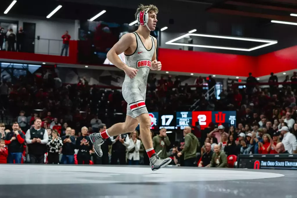 Following a scoreless opening period at 125 pounds, Ohio State’s No. 2 Nic Bouzakis escaped No. 1 Luke Lilledahl to begin the second period, before the 2025 Big Ten champion, Lilledahl, battled back with an escape to start the third frame. Once the bout moved into sudden victory, Lilledahl secured the decisive takedown on Bouzakis to earn a 4-1 decision, marking the Buckeye’s first loss of the season to a non-Ohio State wrestler.